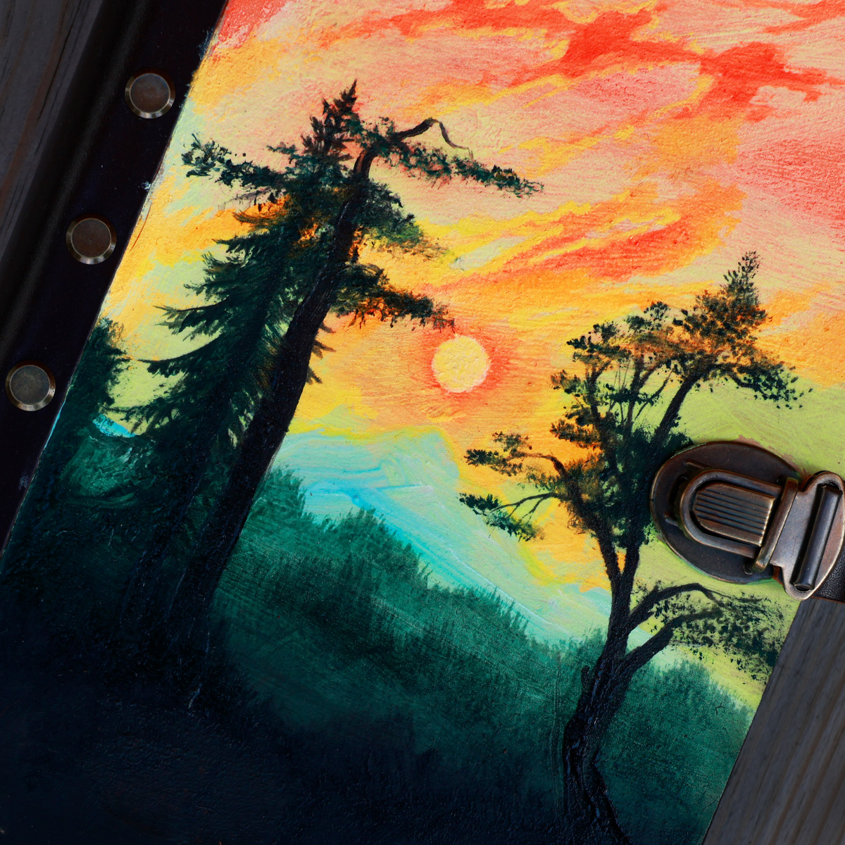 This journal is handcrafted by a family business in Ukraine and made from solid wood and leather, making it robust and long-lasting. The ring binder allows you to easily refill or exchange the paper, so it can be used again. The hand-painted cover features both fluorescent and luminescent oil paints, which softly glow in the dark after being exposed to light and shine even brighter under UV blacklight. Each journal is a one-of-a-kind piece of art and sealed with a special UV varnish for lasting protection.
